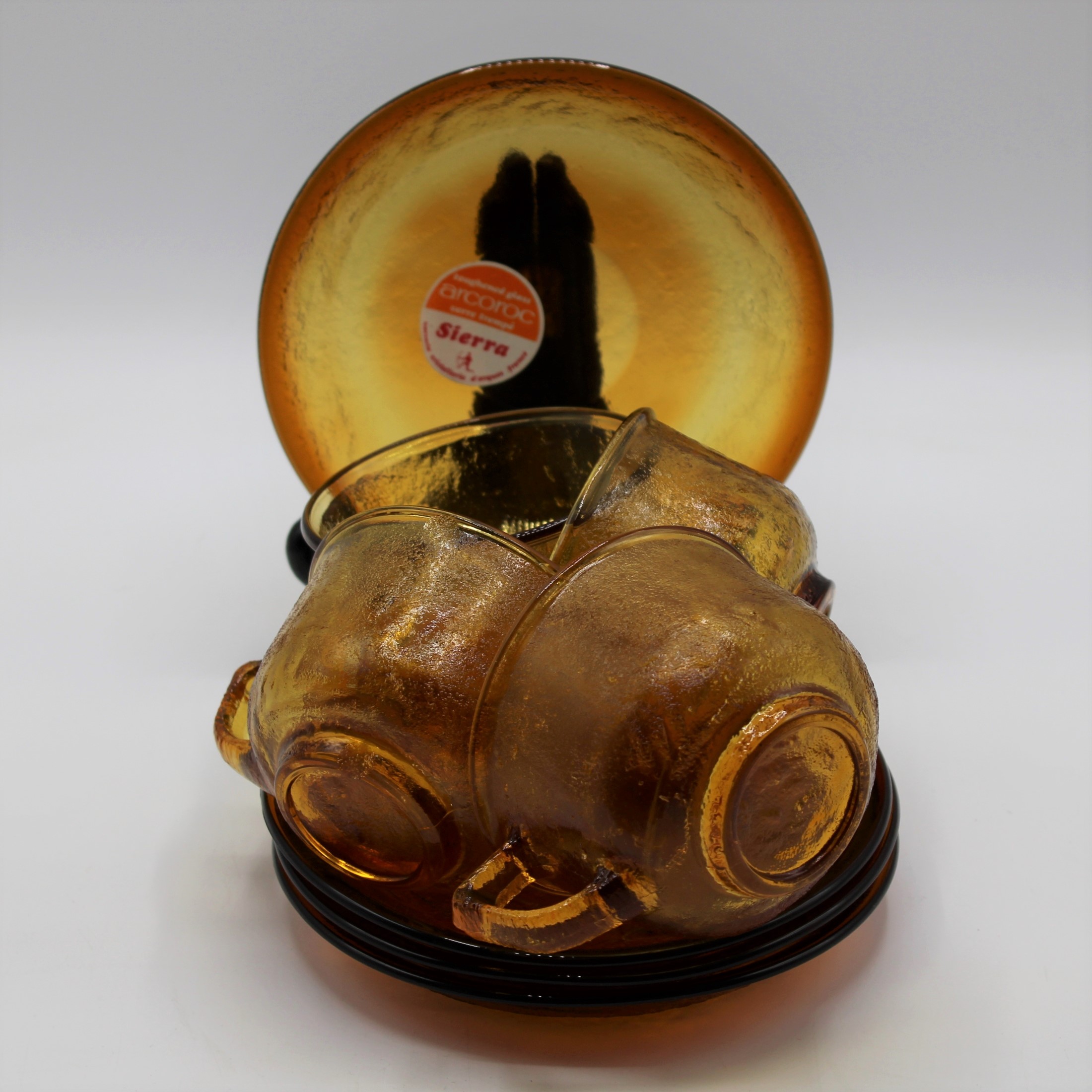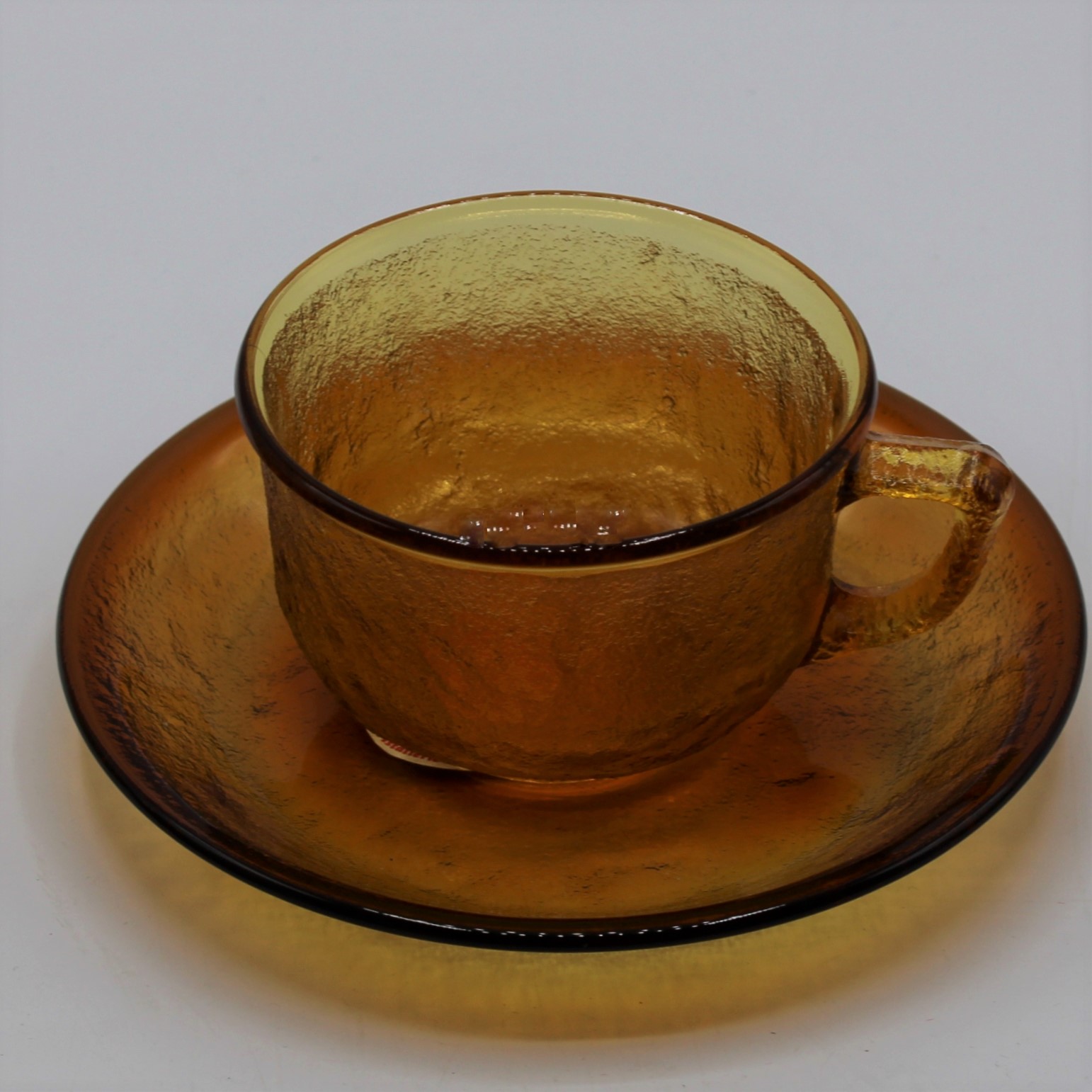 Vintage Arcopal Arcoroc kop en schotel Amber