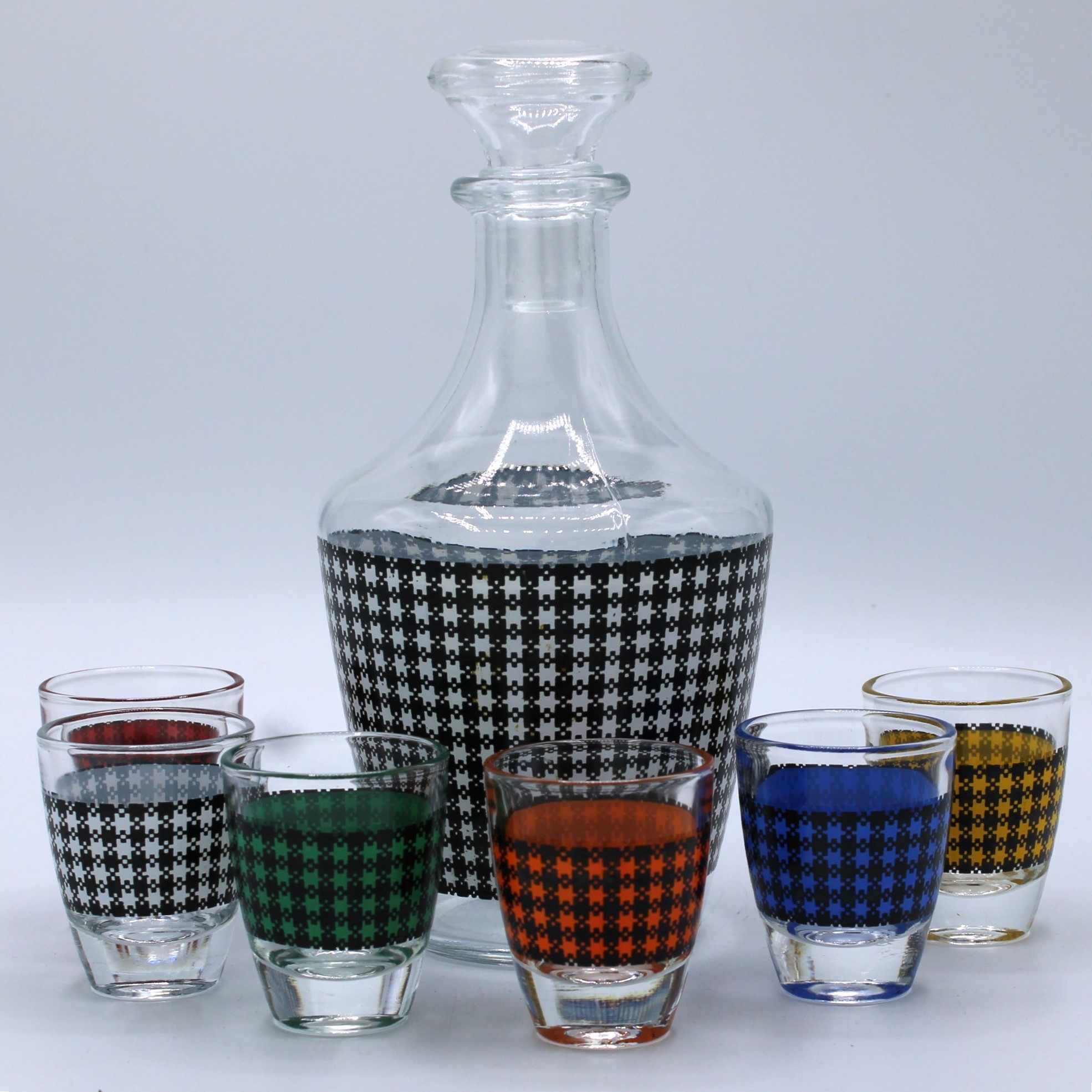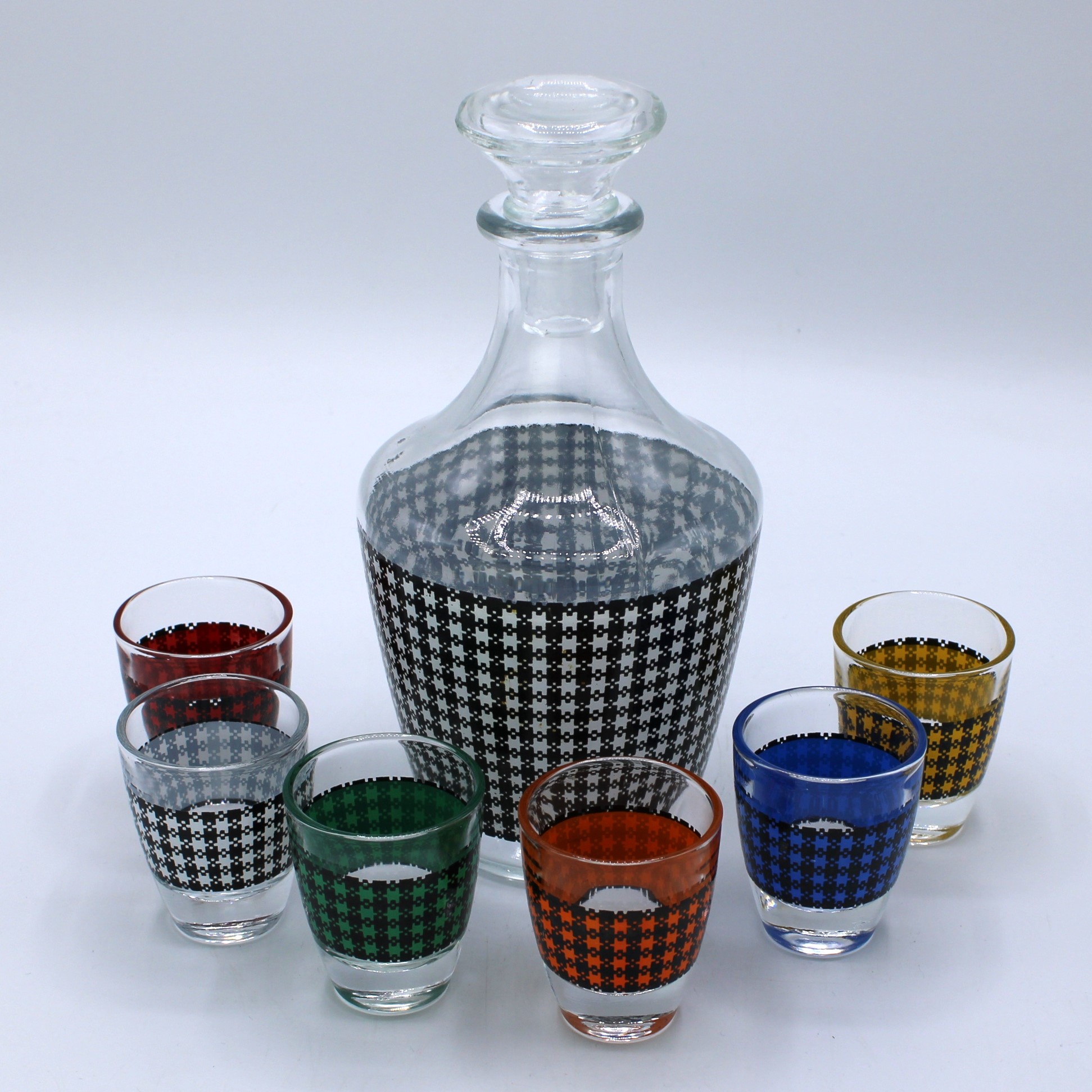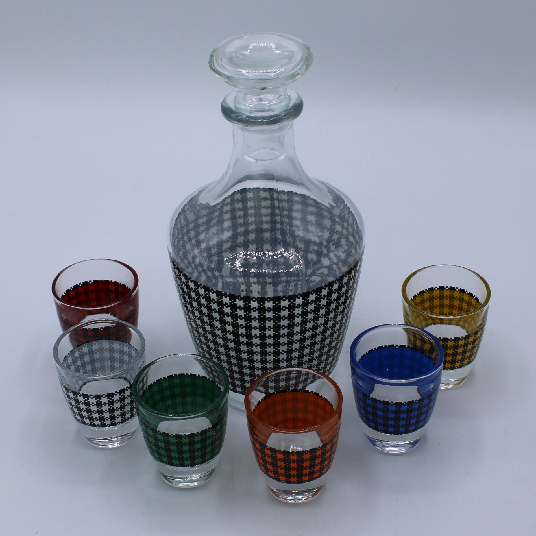 Kleur: karaf en 1 glas zwart/wit – zwart/groen – zwart/rood – zwart/oranje- zwart/blauw – zwart/ geel
