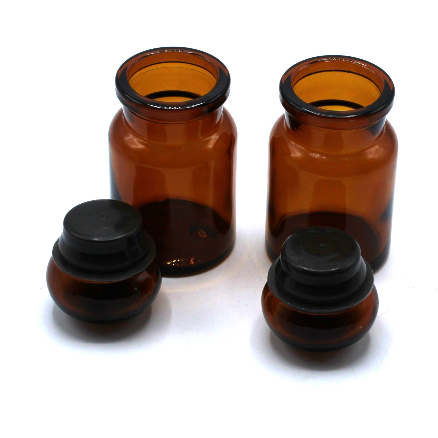 Vintage Set Bruine Apothekers/Voorraadpotten 11 cm en 9.5 cm rond
