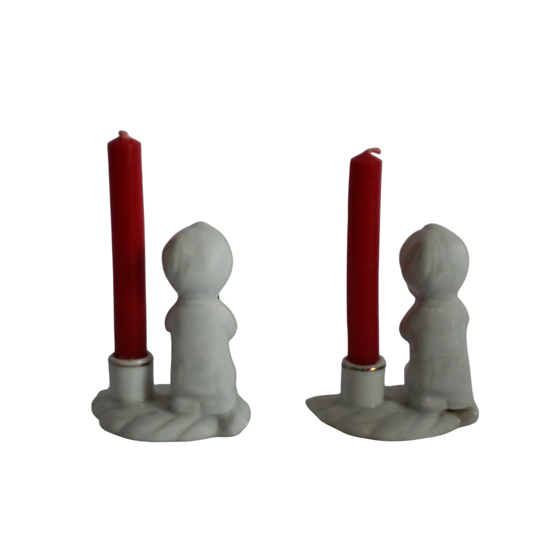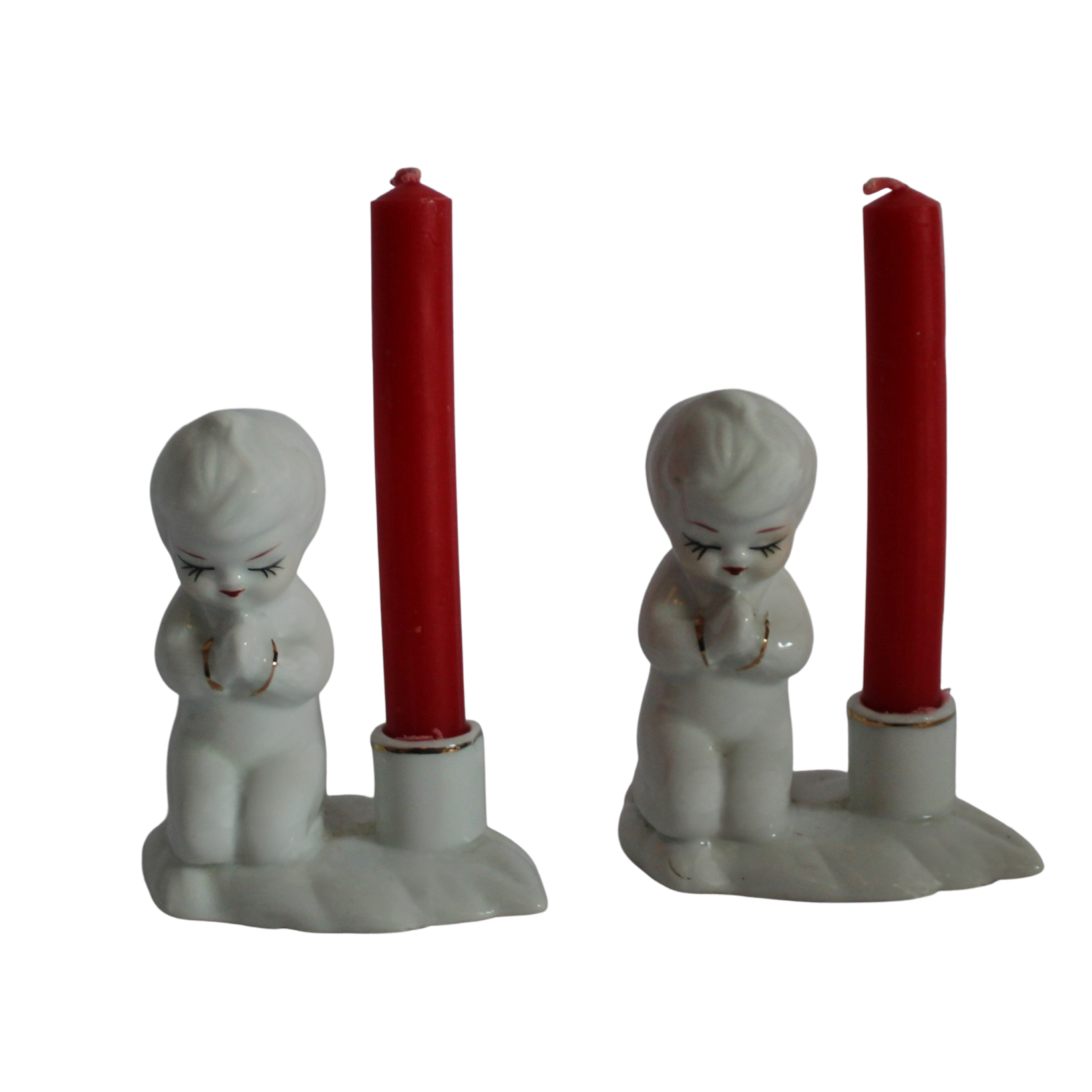 Vintage Set Biddende Engeltjes Kandelaars Porselein