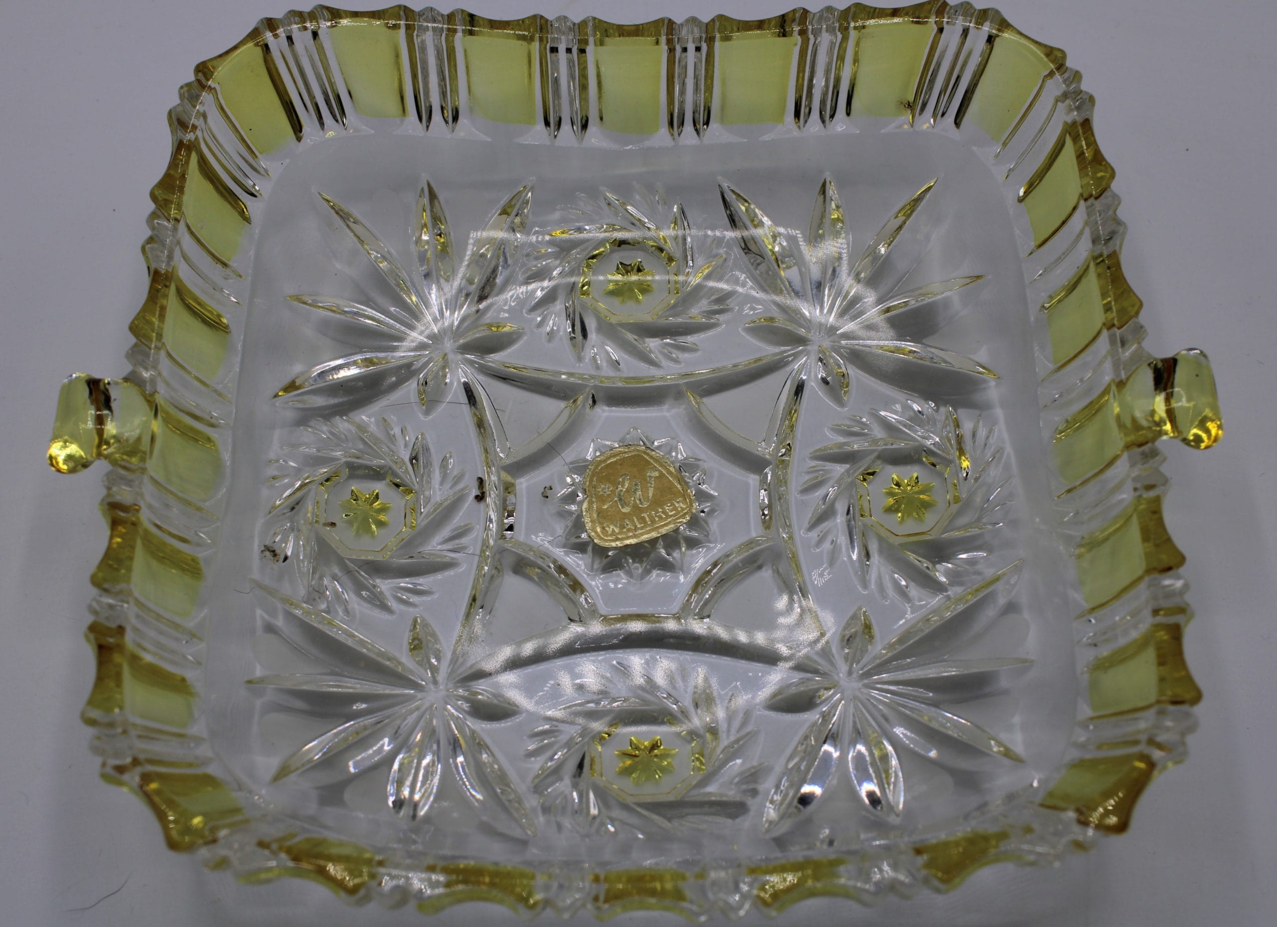 Van het beroemde Walther Glas is deze kristal schaal met gele tinten