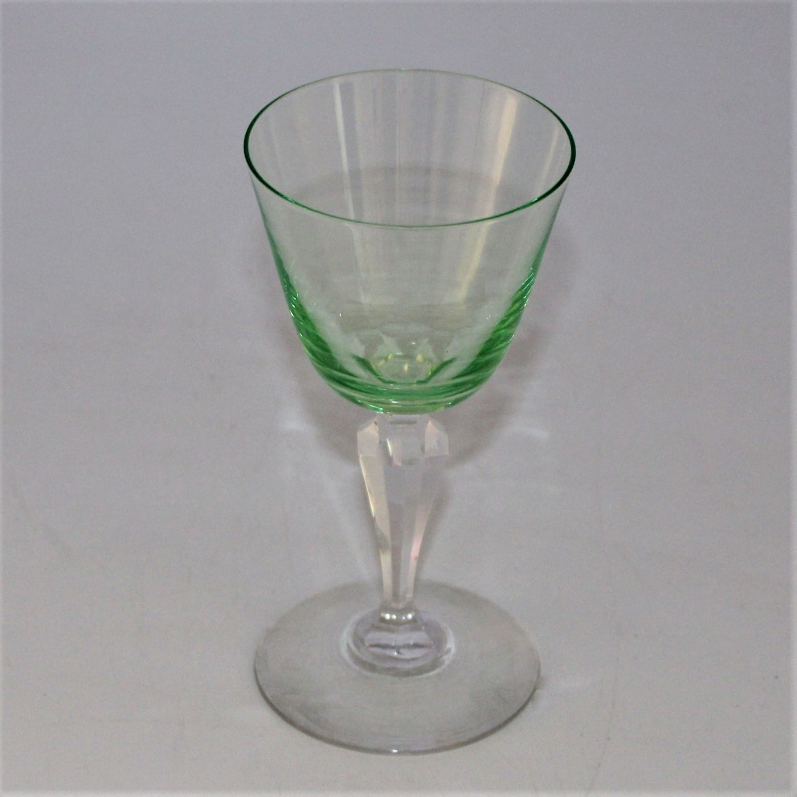 Vintage Uranium wijnglas (Annagroen) blanke voet uranium kelk