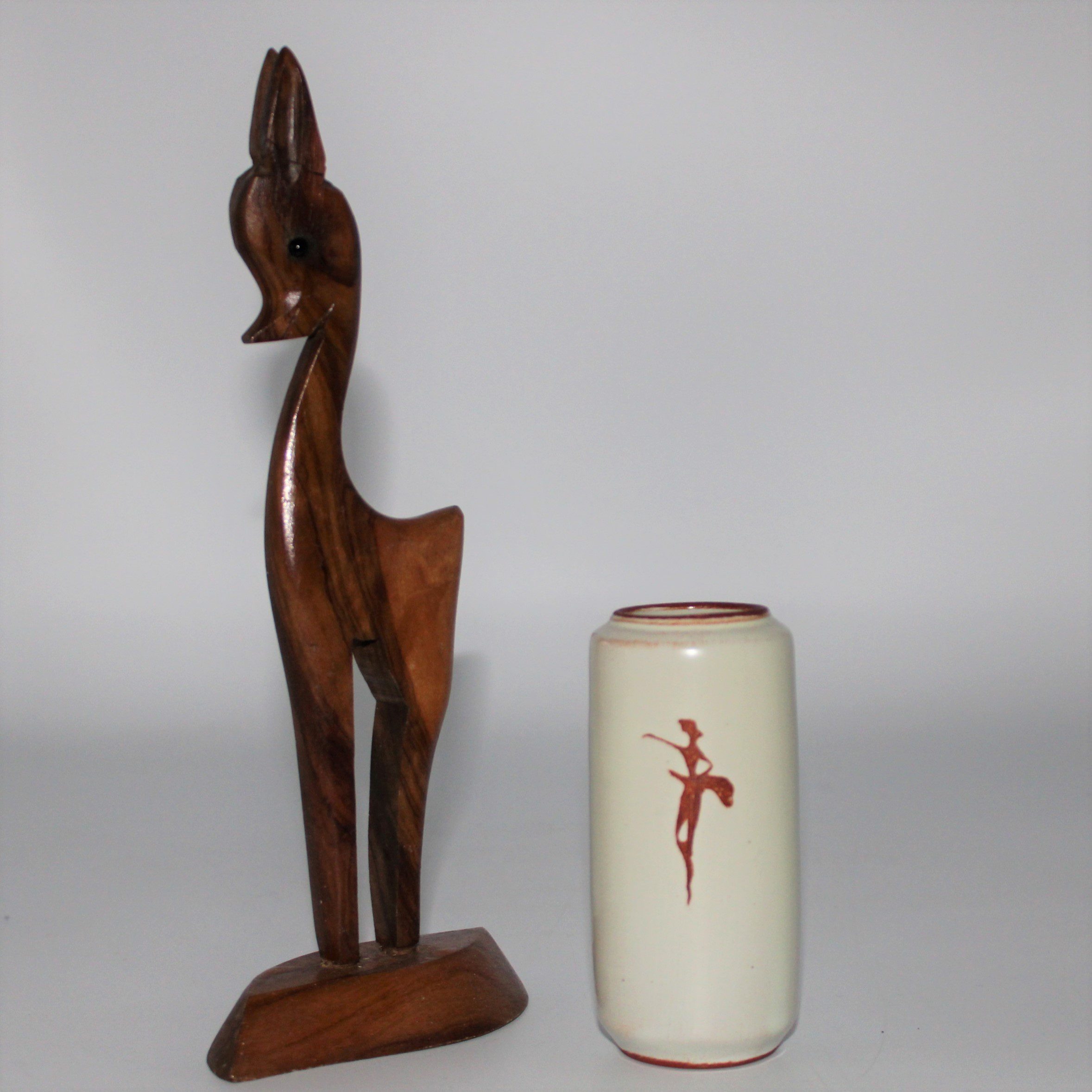 Vintage vaasje met afbeelding danseres / ballerina Afmeting: hoogte 10 cm / doorsnede 4.5 cm Goede vintage conditie / geen schade