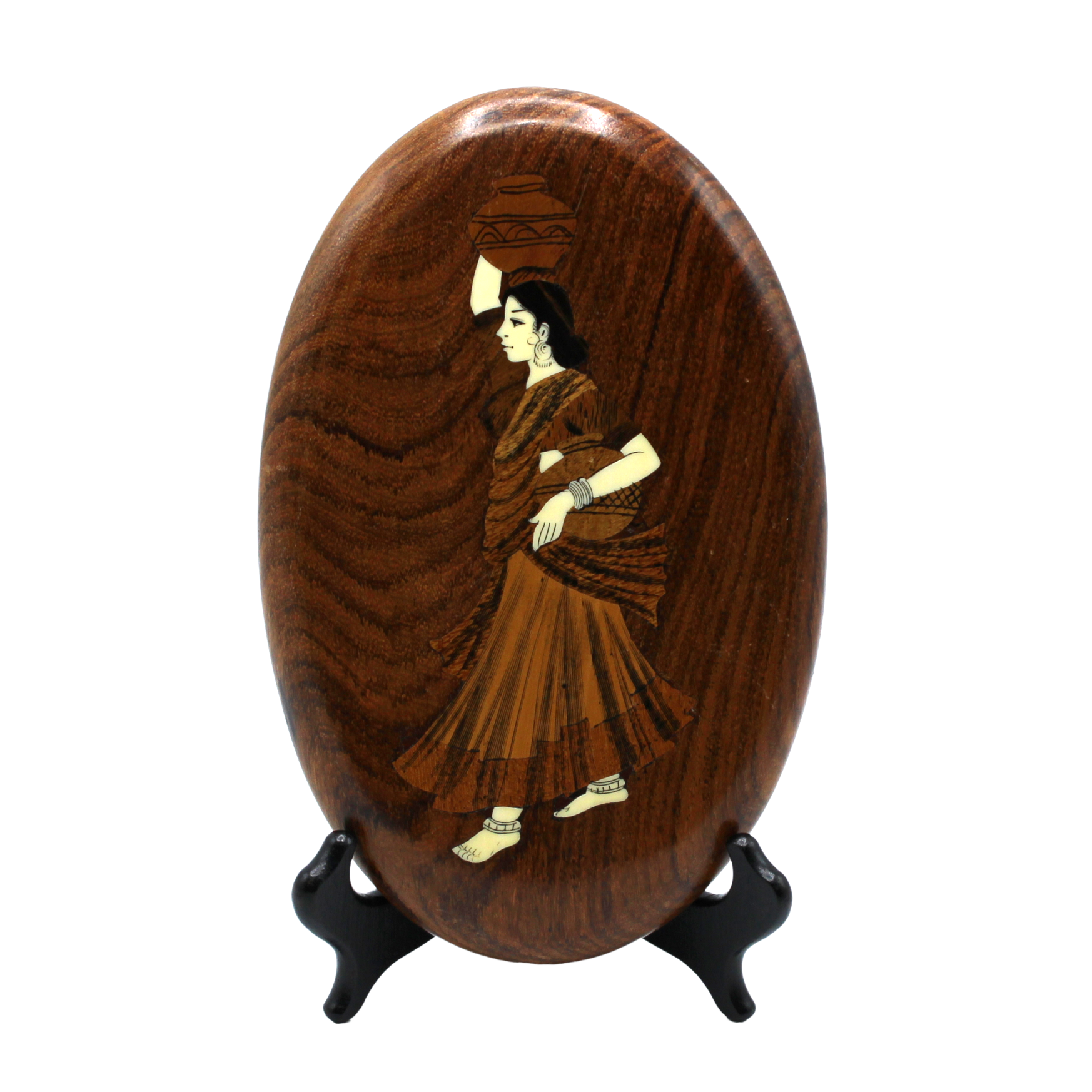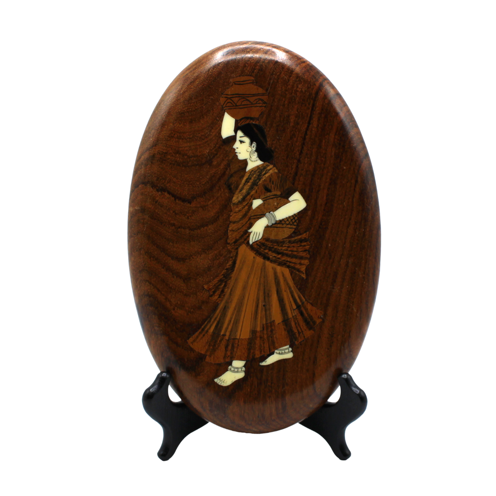 Vintage handgesneden houten geëtste / ingelegde muurplaquette