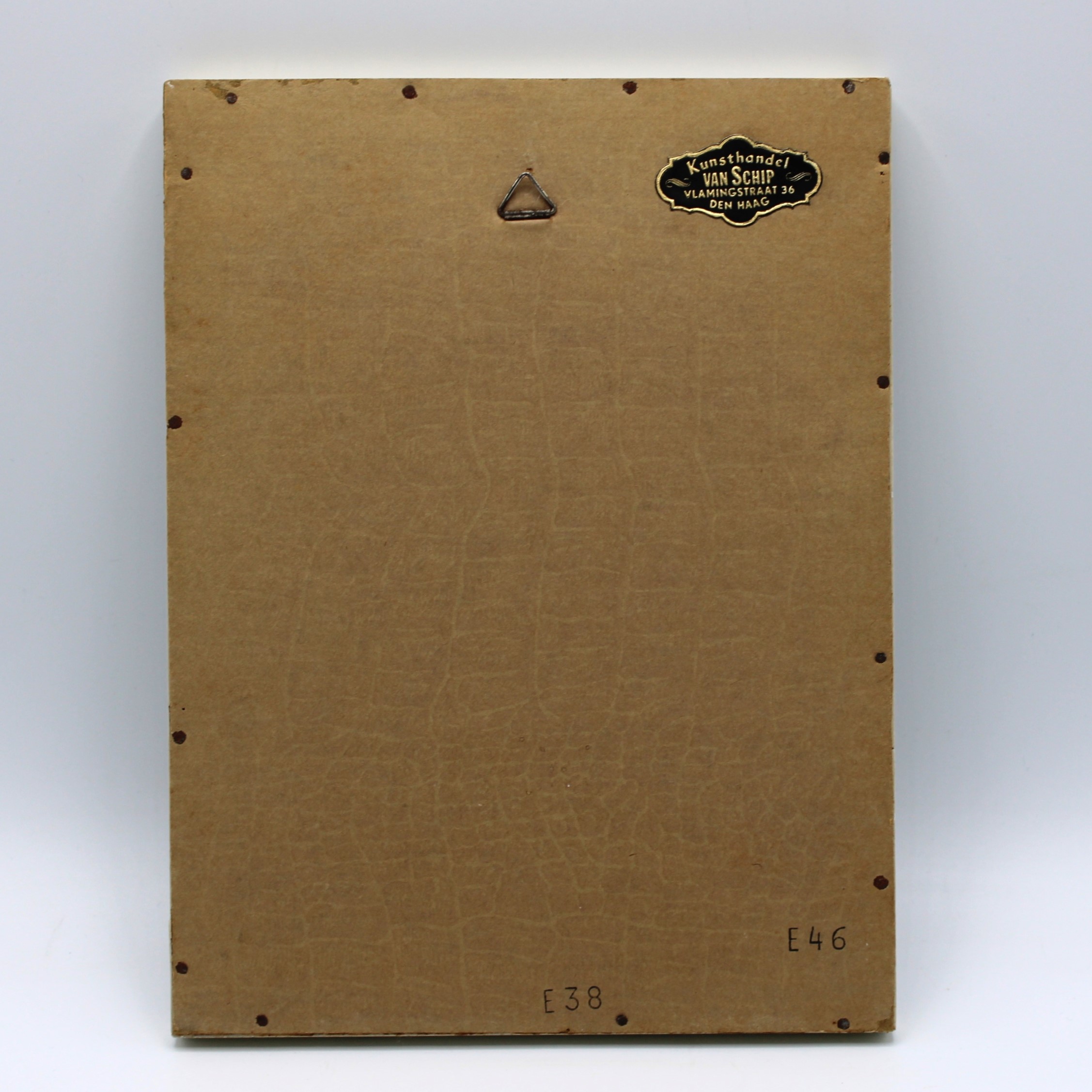 Merkteken: Sticker achterzijde Kunsthandel Van Schip Den Haag
