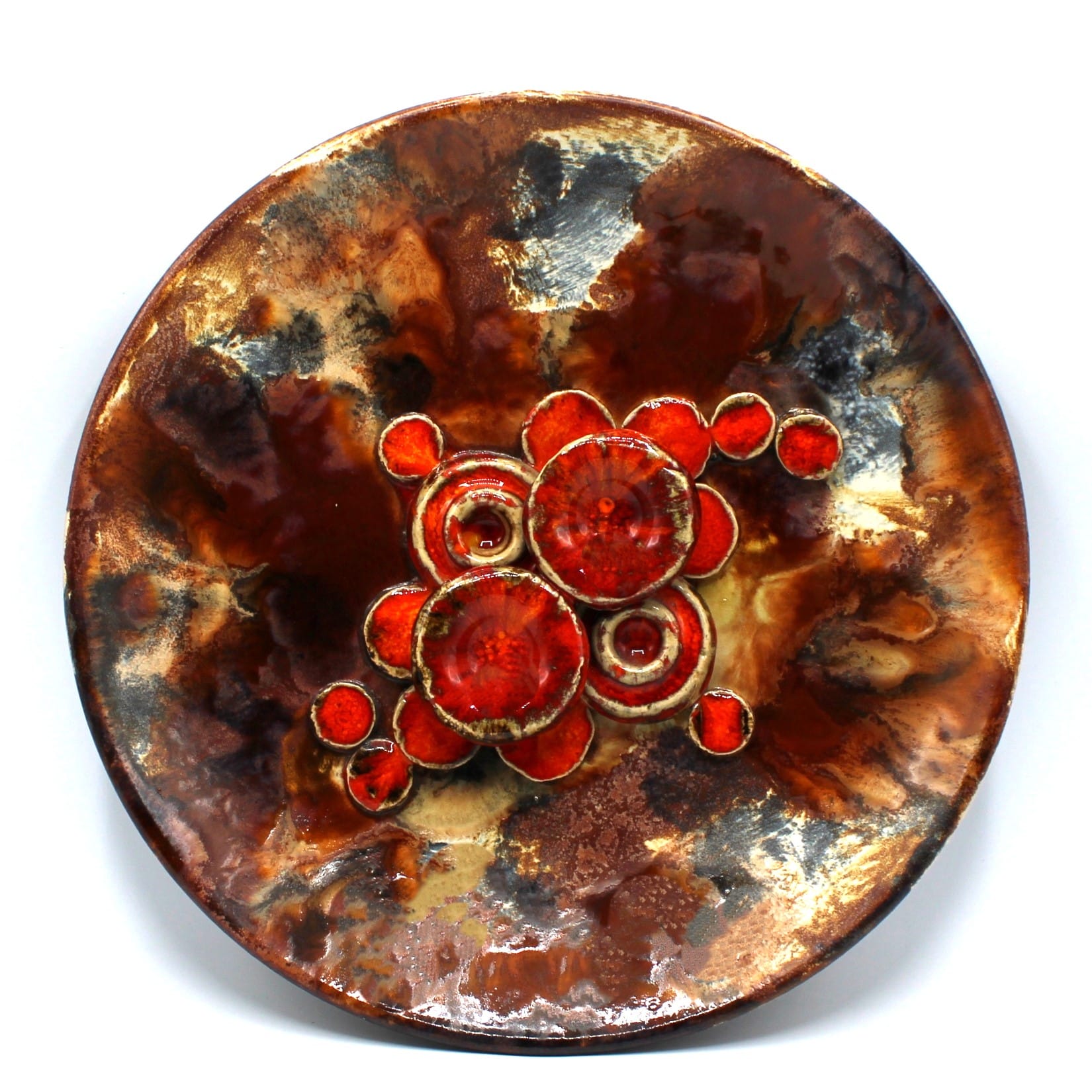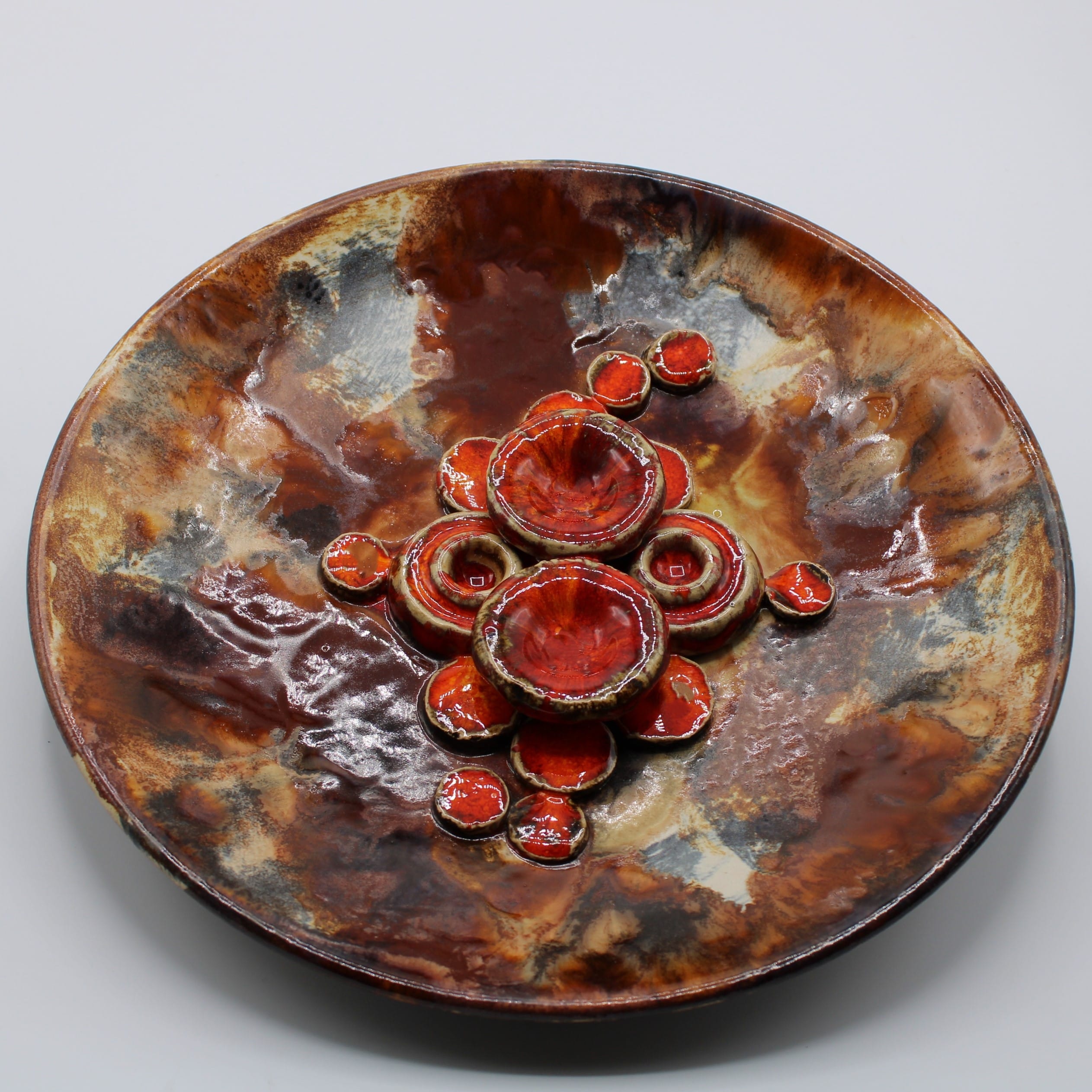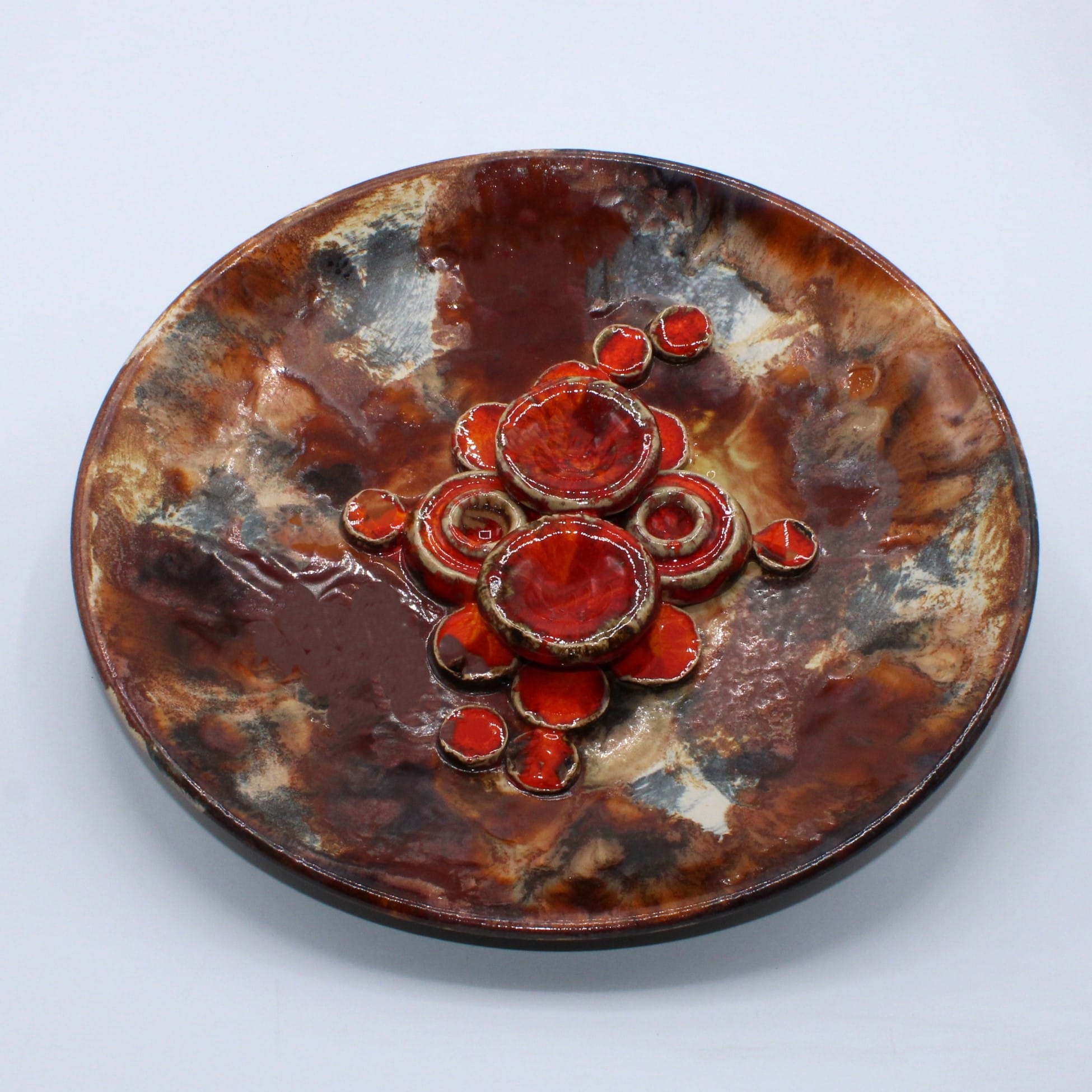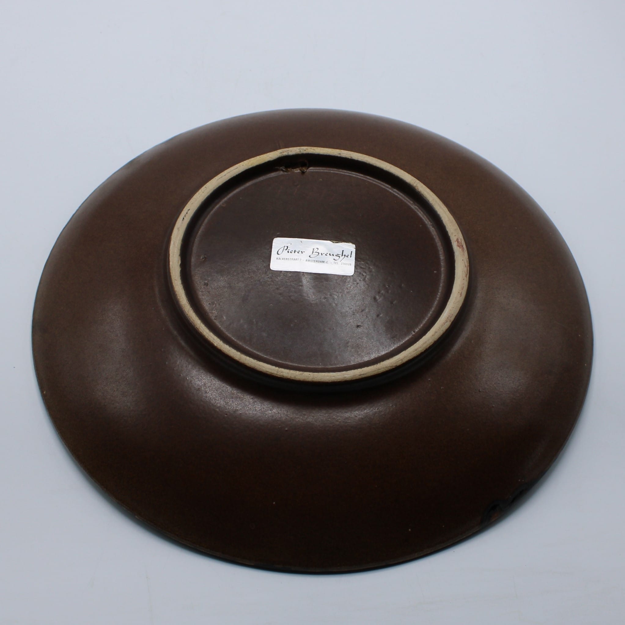 Afmetingen: diameter 28.5 cm Kleur: oranje /bruintinten Merkteken: geen / sticker achterzijde Kunsthandel Pieter Breughel Schade: geen