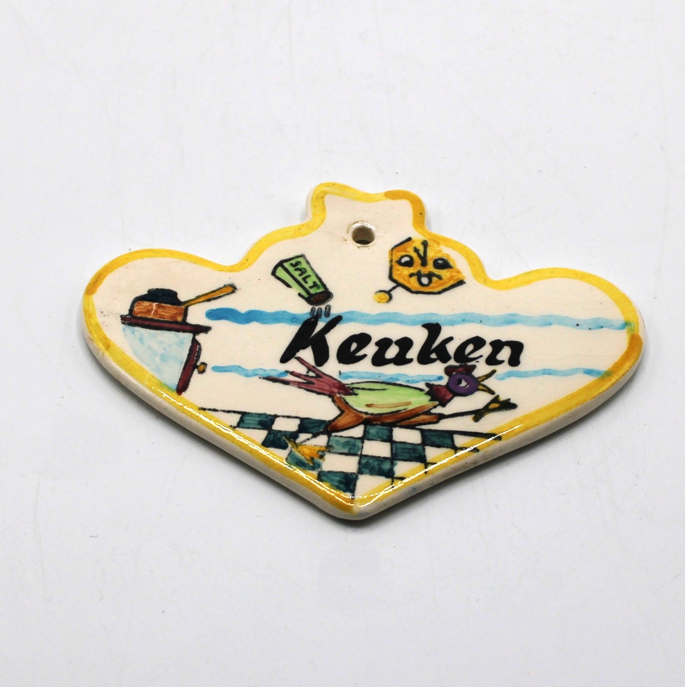 Vintage Toni Raymond Deurplaatje Keuken Jaren zestig Afmetingen: b 10 cm x d 8 cm Kleur: div kleuren zie foto Merkteken: Nade in England Schade: geen